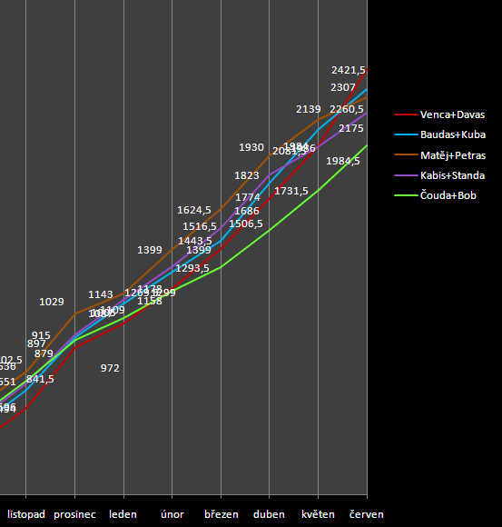 | CELKEM | 2306 | 2260,5 | 2421,5 | 1984,5 | 2175 |