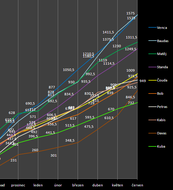 | 1.L | Bob | Petras | Matěj | Bédas | Čóda | Kabis | Davas | Standa | Véna | Kuba |