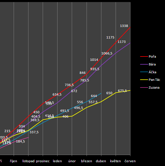 | Říjen | 195 | 267,5 | 155 | 206 | 187 |